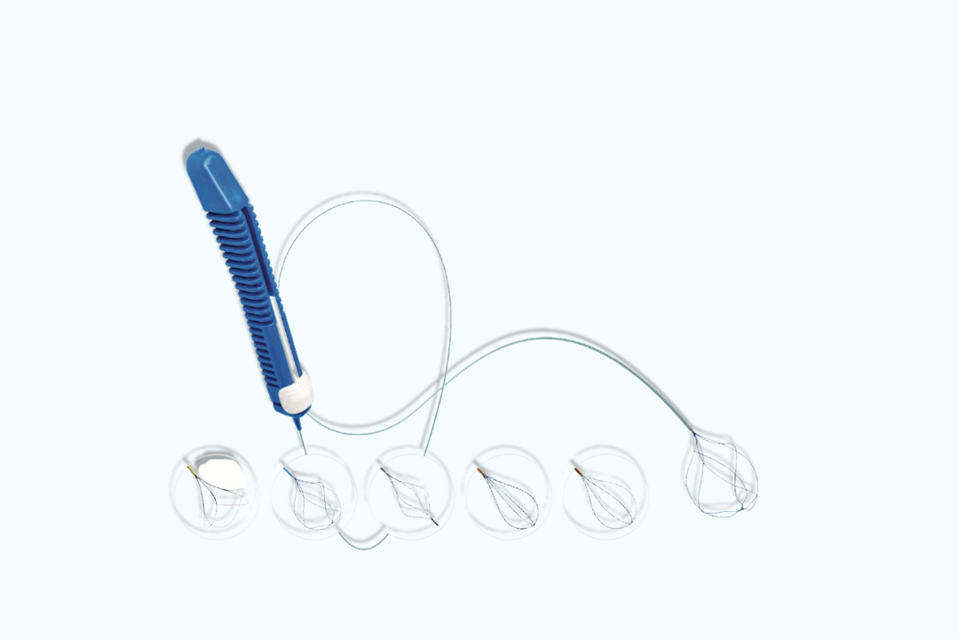 The Stone Retrieval basket is designed to manipulate, grasp and remove calculi and foreign bodies from the urinary tract. Its detachable handle allows the withdrawal and re-entrance of the scope when the basket is situated.